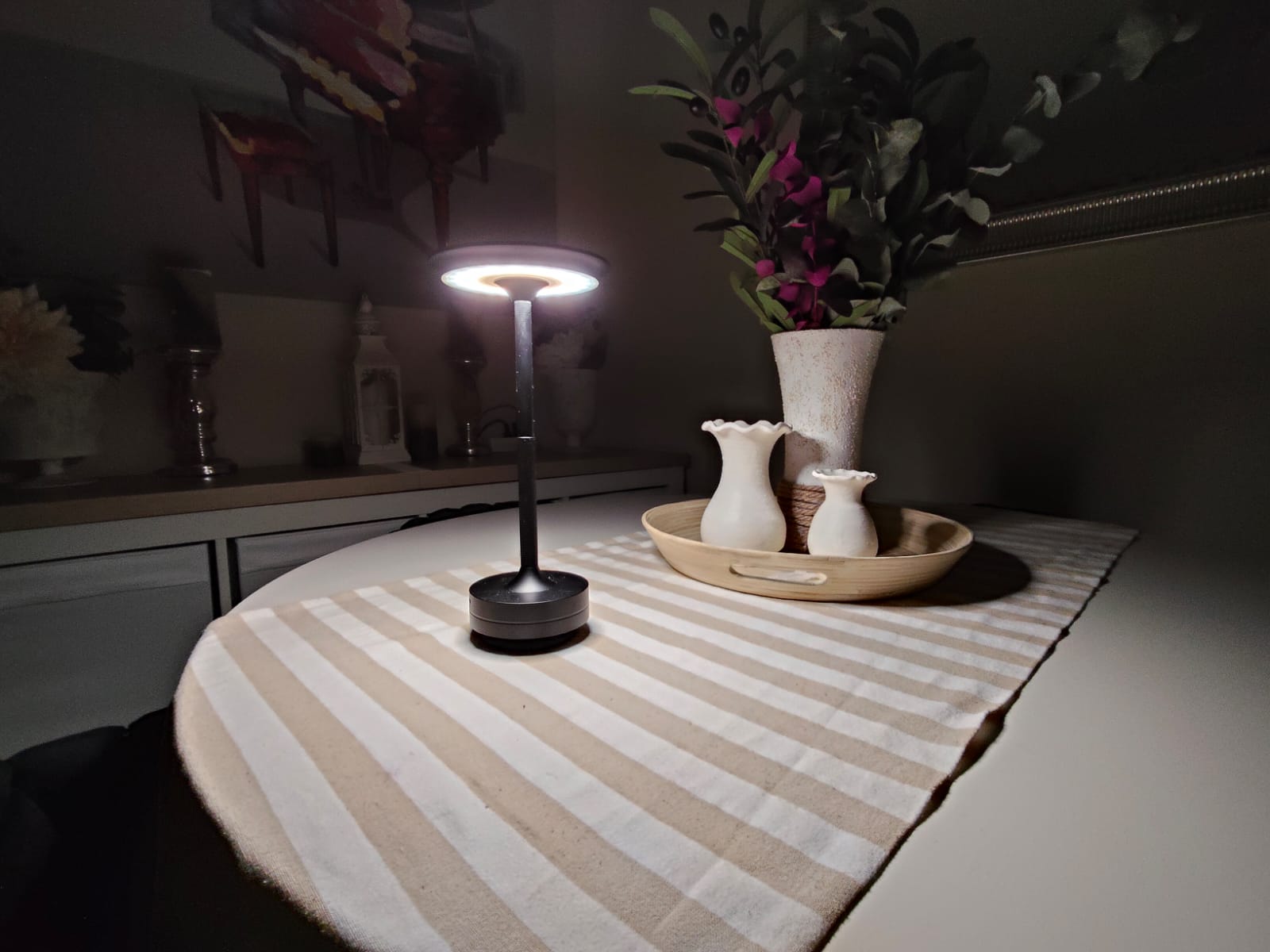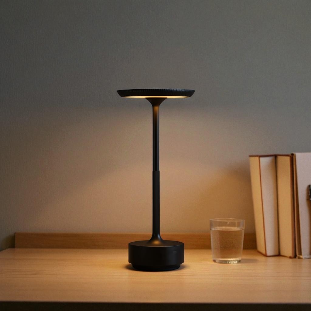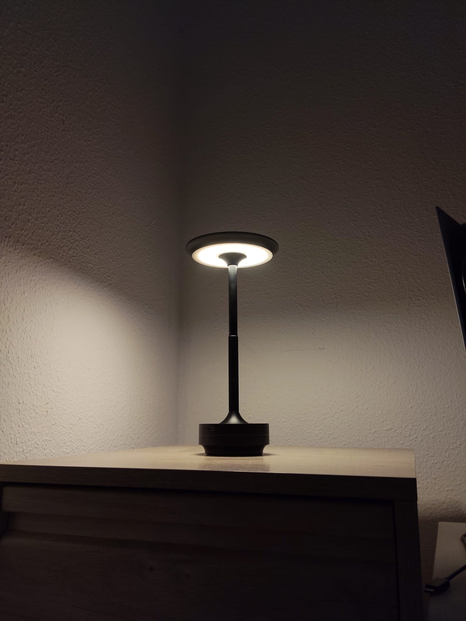 Funciona de forma inalámbrica, se carga por USB y su control táctil superior te permite elegir entre tres tonos de luz: cálido, beige o blanco suave.